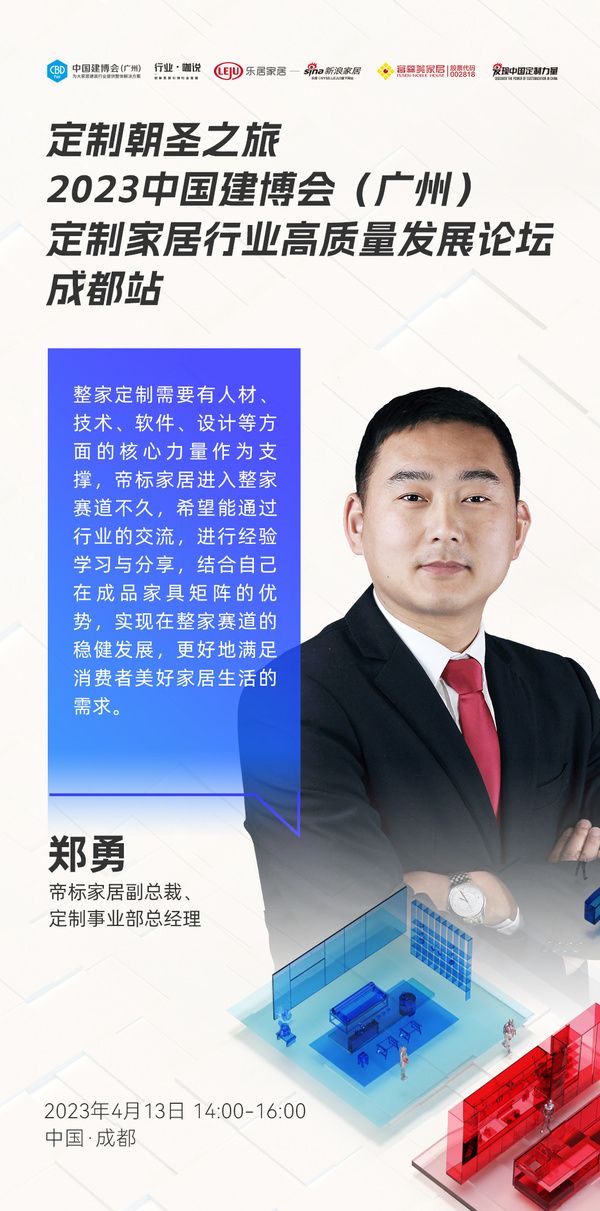 帝标家居副总裁、定制事业部总经理郑勇:整家定制需要有人材、技术、软件、设计等方面的核心力量...