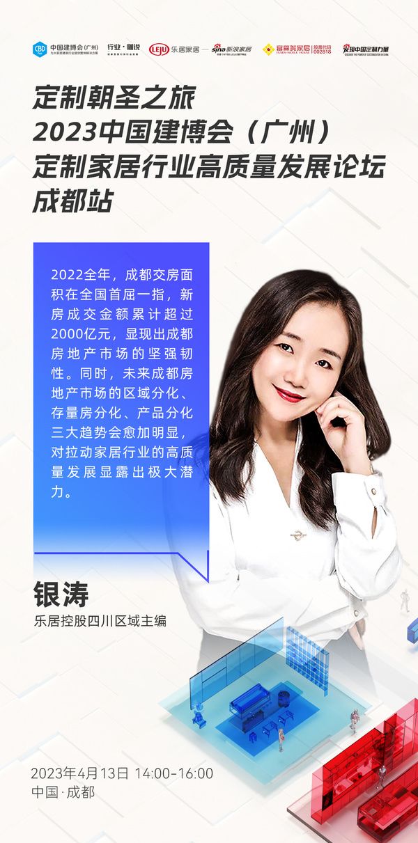 乐居控股四川区域主编银涛:2022全年,成都交房面积在全国首屈一指,新房成交金额累计超过2000亿元,显现出成都房地产市场的坚强韧性。同时,未来成都房地产市场的区域分化、存量房分化、产品分化三大趋势会愈加明显,对拉动家居行业的高质量发展显露出极大潜力。