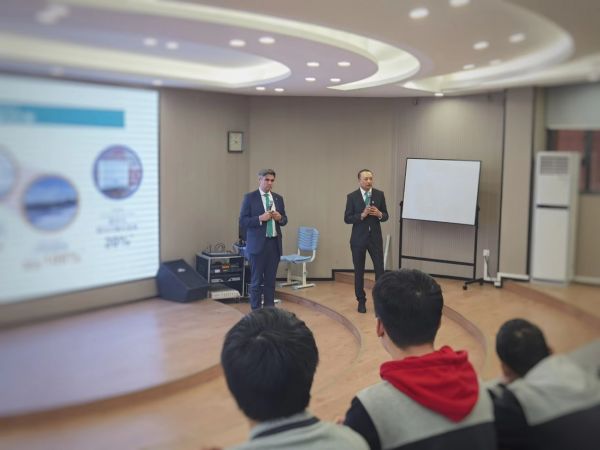 4月12日,Andree Groos博士来到武汉,出席了德国威能武汉金鑫店的开业仪式;随后,到武汉燃气热力学校与在校师生展开交流,围绕欧洲和中国的能源现状以及威能的解决方案发表了精彩演讲。
