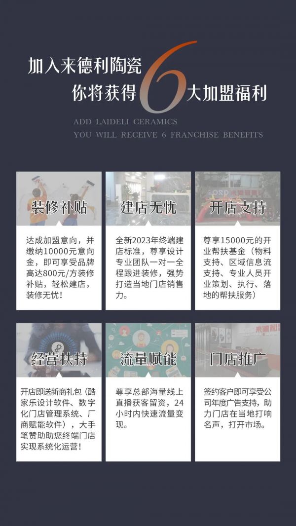 陶博会招商直播虽结束,但加盟政策一直在,欢迎全国各大城市客商继续对来德利进行考察了解,我们期待有更多志同道合的人加入来德利陶瓷,共创2023财富未来!