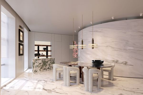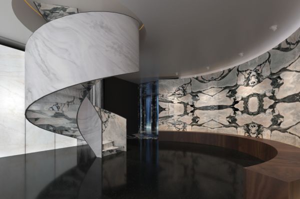 欧若拉精工奢石具备能媲美天然奢石的美妙纹理和自然质感,同时以守护自然为使命,坚持使用绿色可循环材料。从入户、客厅、楼梯、厨房、衣帽间、卫浴六大空间全屋覆盖,集合可异形、可弯曲、可透光设计,让空间装饰有了更多的选择。