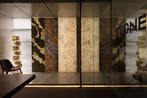 欧若拉精工奢石坚持原创,每一款新品的背后都凝聚着研发人员巨大的心血和汗水。通过不断地探索与尝试,欧若拉现已拥有多种表面效果及天地墙应用优势,有着独特的产品定位和意式特色,开拓了奢石高定理念。