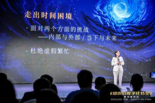 随后,众人一同前往天穹剧场参加陈春花老师的《组织的数字化转型》新书发布会,现场由陈春花老师介绍企业数字化转型背后的思考逻辑和科技投入,让大家深入了解数字化的可能性和前景,为数字化时代的经济和社会变革探讨方向。