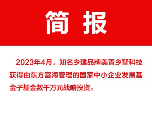 2023年4月,知名乡建品牌美置乡墅科技获得由东方富海管理的国家中小企业发展基金子基金数千万元战略投资。