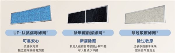 全新Daikin Care大金中央空气系统B+系列可在安装使用后,根据个人需求追加让日常使用更加安心的“UP-钛抗病毒滤网” *2;新居帮手“除甲醛触媒滤” *3;防患于未然的“除过敏原滤网” *4;以及针对室内空间做到除病菌净化的“超能粒除菌组件” *5。