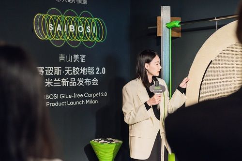 4 月 18 日,无胶地毯开创者青山美宿·赛波斯受邀参展世界顶端设计盛会 2023 米兰设计周,成为米兰布雷拉设计区 Circolo Filologico Milanese 唯一参展的中国地毯品牌。青山美宿·赛波斯于米兰设计周隆重发布新一代无胶地毯,该地毯率先采用专利锁绒线技术,整张地毯不用一滴胶水,创新地解决了机织地毯的甲醛和气味问题。开展首日,源自中国的创新无胶地毯吸引来自全球各国的设计专家、行业媒体参观,意大利知名创新设计传播机构 Mosca Partners 这样评价来自中国的创新无胶地毯:青山美宿·赛波斯无胶地毯代表了地毯行业创新的尖端!