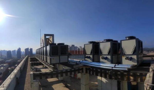 医院在县城中心,院区空地有限,四周是住宅小区,于是将热泵空调的安装地点定在了医院楼顶处。