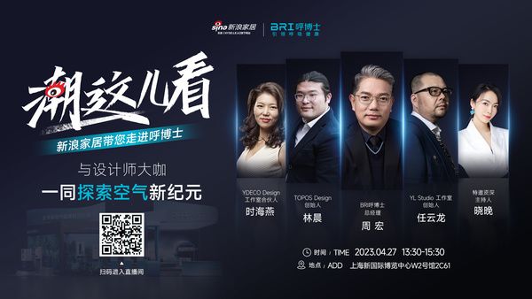 27日下午13:30,新浪家居将联合YDECO Design工作室合伙人时海燕、TOPOS DESIGN创始人林晨、YL Studio工作室创始人任云龙等知名设计师,强强成团,打造“潮这儿看”系列栏目,以设计角度,探索呼博士创新科技,见证健康空气的新体验。