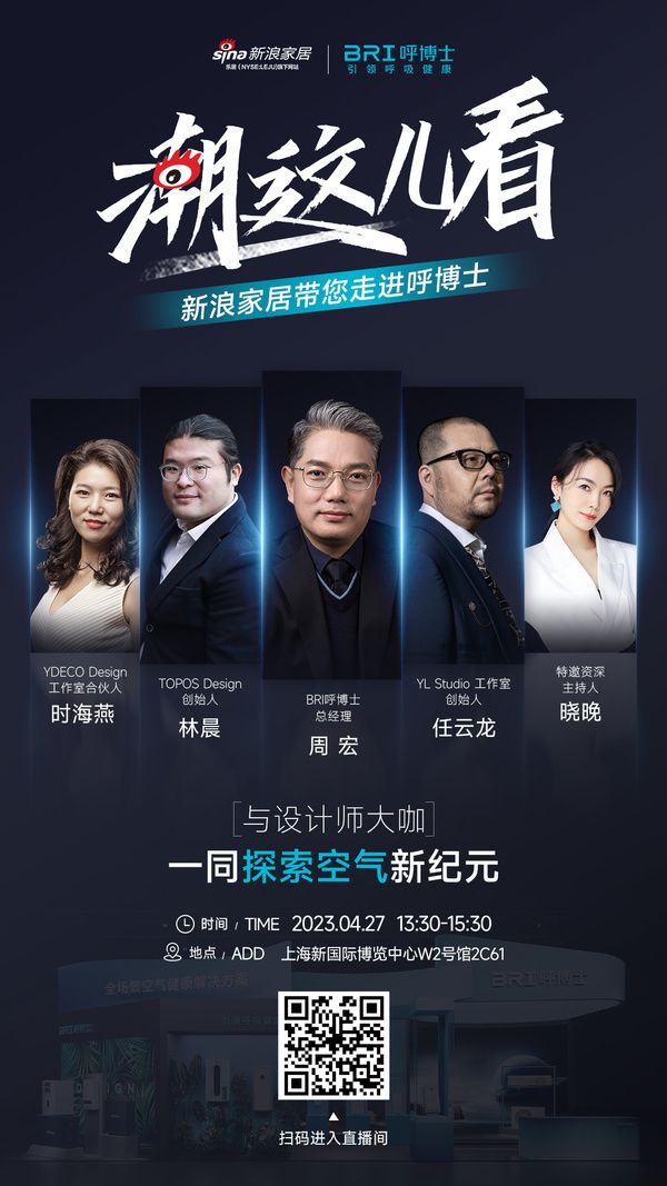 届时,新浪家居还将邀请BRI呼博士总经理周宏展开高端对话,分享呼博士全场景健康空气解决方案如何赋能各行业场景,揭秘空气进化的科技创新,让我们一起敬请期待!