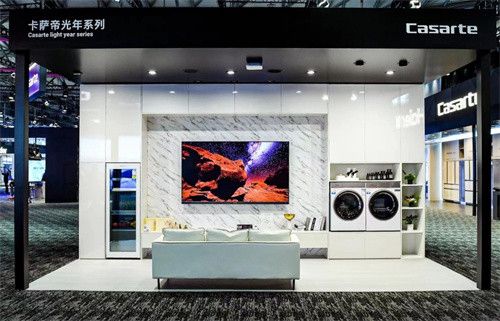 此外,卡萨帝电视现场展示的平嵌、零贴设计,以及5.1立体声道带来的天空音,则为用户带来了音画双绝、智慧无双的极致体验,同时能互联8000多款智慧家电,实现一屏控全家。这不仅完美地契合了“设计一个家,服务一个家,建设一个家”的理念,还让电视成为交互用户的入口、全屋娱乐的中心和整个智慧家庭的大脑,引领客厅住居美学。