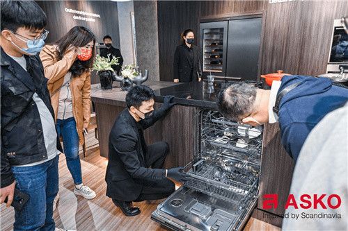 现场,ASKO还为观众展示了DW60洗碗机、升降烟机和台下式酒柜等全新升级的重磅产品,提供高端生活家居解决方案。DW60洗碗机腔体内为18.9医用级不锈钢,全面的喷淋区水流覆盖大360度无死角冲刷,确保洗涤环境健康专业,轻松解决清洗难题,臻享休闲时光。升降烟机从美学到性能全面进化高阶版,超薄机身完全嵌入,烹饪一启动,烟机同步开启,智能互联远程操控,输出强劲动力,海量油烟即刻一扫而净,让你烹饪体验耳目一新,尽在掌握中。ASKO遵循北欧简约奢华的设计美学,新品台下式酒柜将纯粹和线条之美充分展现,智能调温精准湿度控制,避光设计阻断外界热空气对流,精妙臻储每滴醇香。