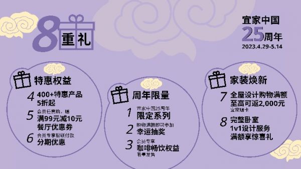 怀着为大众创造更美好的日常生活的愿景,宜家已与中国万千家庭一起度过了25年的共同成长旅程。 “给生活更多值得,不止25年“,是宜家长久陪伴中国消费者的美好期待。 25周年,也是下一个25年的开始。未来,宜家将和消费者一起,持续探索、启发家的灵感时刻,为生活增添更多美好和值得。