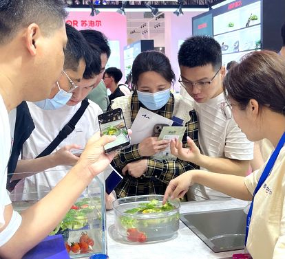 该款新品果蔬清洗机净化功率提升至25w,实现3分钟高效净化食材。产品创新应用漩涡清洗水流技术,通过高速旋转把草莓、圣女果、蓝莓等难洗水果的缝隙的虫卵杂质统统转出来,魔性又高能的视觉效果吸引了无数客户的围观!