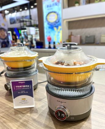 展会期间,东菱邀请了专业美食达人现场复刻汽锅鸡汤。通过蒸汽锅的“汽锅模式”,达人自制两道夏日时令靓汤:羊肚菌汽锅鸡汤、鲍鱼汽锅排骨汤。利用蒸汽烹饪,食材无需加一滴水,开放式厨房场景设计让观众直观地看到“蒸汽循环慢慢凝结成精华汤汁”的过程。