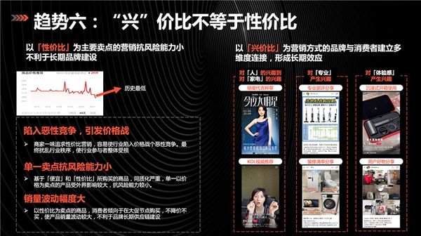 最后,什么值得买还结合“科学消费”理论,在《报告》中梳理出家电行业穿越生命周期的六大趋势:高端化不等于盲目高需求;健康化不等于生活繁琐化;智能化不等于封闭孤岛化;身份认同不等于身份绑架;内容营销不等于卖点营销;“兴”价比不等于性价比。在什么值得买看来,技术升级与科技创新带来的产业升级,正在与新环境下的消费需求互为反哺,为家电产业及行业带来更大的发展空间,什么值得买也希望能够借势AWE这一平台,充分发挥自身资源优势,助力行业实现更好发展。