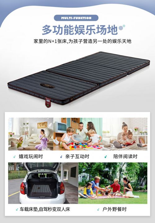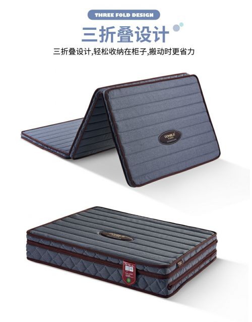这款床垫尺寸为1.9米*0.9米,厚5公分,采用三折叠设计,可以放进汽车后备箱,十分方便携带。床垫表面采用纯棉亲肤面料,耐刮耐磨,不易起毛球,而且亲肤透气,有助于营造一个舒适的睡眠环境。