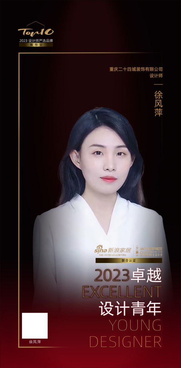 室内设计是一种创意与艺术的结合,设计者结合市场共同趋势和艺术发展变革,深入探寻人与人、人与空间、空间与自然的和谐关系。由新浪家居和金堂奖全国联盟发起的“2023卓越设计青年”,是设计业界最具传播价值的年度先锋荣誉,新浪家居与金堂奖联名认证,旨在发掘和表彰室内设计领域表现卓越的杰出青年设计师。本期重庆二十四城装饰有限公司 设计师徐风萍荣膺“2023卓越设计青年”称号。