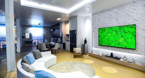 想要切身体验一下?移步全屋智慧微场景体验区。家住上海的刘先生侃侃而谈:刚到家,灯光会因为不同季节有不同的氛围变化,按现在上海的天气,提供的光线也是干净明亮的,在客厅,可以定制观影模式,空调开启并调整到个人喜欢的温度,音箱打开,窗帘缓缓关闭,营造出观影的最佳氛围。