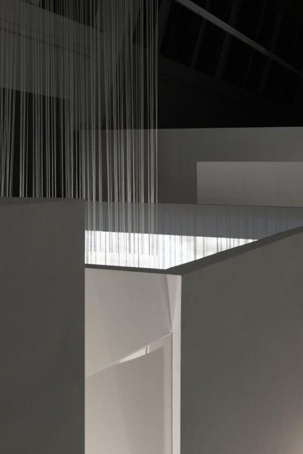 “以影像打开思想的边界,是视觉的,也是心灵的诗人。”展览空间设计围绕策展人提出的这一主旨,从观展动线入手,结合场地原始环境4m-8m的层高展开。与常见的全封闭式影像展示空间不同,KiKi建筑设计事务所在满足艺术作品呈现条件的前提下,通过克制且轻盈的手法,赋予12个观影空间“独立性”、“流动性”及“沟通性”。