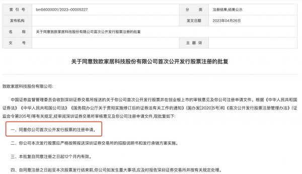 据证监会官网4月26日披露,致欧科技创业板IPO注册申请成功通过证监会审批,这意味着致欧科技距离登陆深创板仅剩下时间问题。同时,此次致欧科技IPO成功过审,也让河南省迎来了首家互联网家居上市公司。