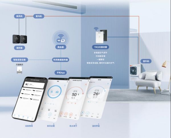 特灵公寓专享系列Aquakool Mini空调地暖一体机拥有智能远程控制系统,可以连接天猫精灵,进行语音操控,让父母长辈也能轻松体验智能生活的便捷。无论您身处何地,都能实现手机APP远程监控,多种模式,随意切换 ,指尖轻触间,一切尽在掌握。