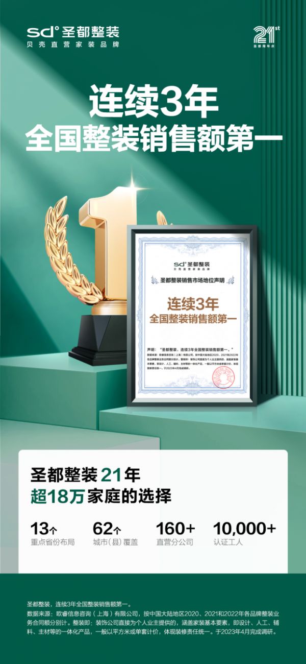 据了解,“第一”的声明需要基于其市场份额超过第二位2.5个百分点,而“领先”指的是行业里排名前五的企业、品牌。三次拿下“全国整装销售额第一”的成绩背后,是圣都整装对交付品质的持续深耕。