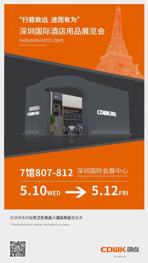 CDWK创点以健康、科技为产品核心,为全球用户提供更便捷、更健康、更环保、更舒适的高品质生活。以上展会,CDWK创点将提供科技与智能,颜值与实用性相结合的酒店用品、公共卫生用品、智慧厕所、养护医疗系列等一站式解决方案与国内外行内经营者及采购商见面,现场体验创点智造,共探前沿技术,我们与你不见不散!