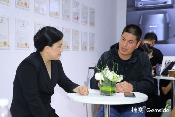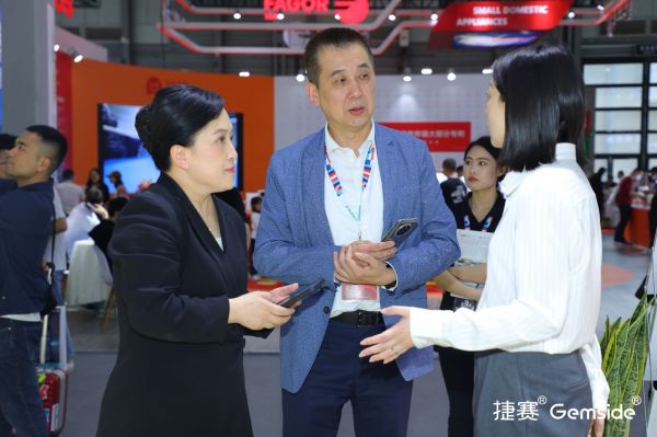 展会期间,中国家用电器协会副理事长徐东生也参观了捷赛厨电展区,并对智能烹饪市场以及年轻化群体需求等话题与捷赛厨电董事长顾莉莉进行了深入交流。