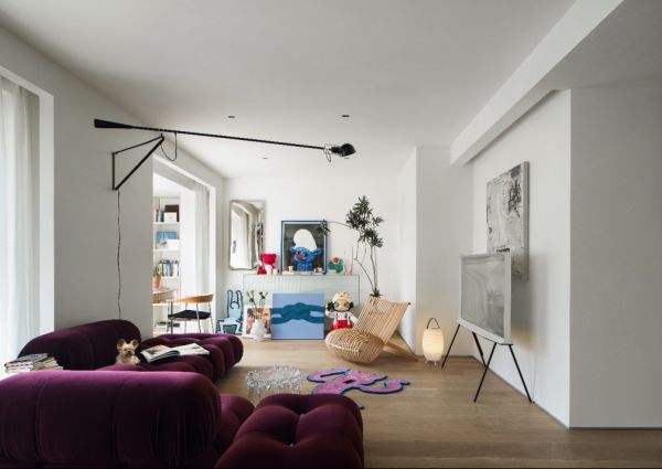 在与柯沅伽的交流中,她特别谈到家中的无过道设计,将客厅打造成一个完整的空间,家就是她心境的完全写照。110平米的空间里每一处都是她精心挑选的心爱之物。客厅装满了自己喜欢的艺术品,家具和软装可以根据季节与心情随意变化组合,任情绪自由流动,无拘无束。