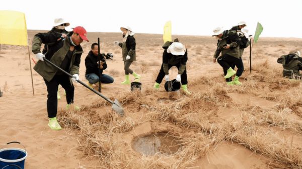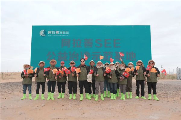 西卡德高领导和好工匠会员师傅们,跨越几千公里,抵达了阿拉善SEE公益治沙基地。他们不畏风沙,挥锹铲土、提桶浇水,以西卡德高之名种下了一棵棵“沙漠最强卫士”梭梭树,为阿拉善沙漠锁边造林强势助力。