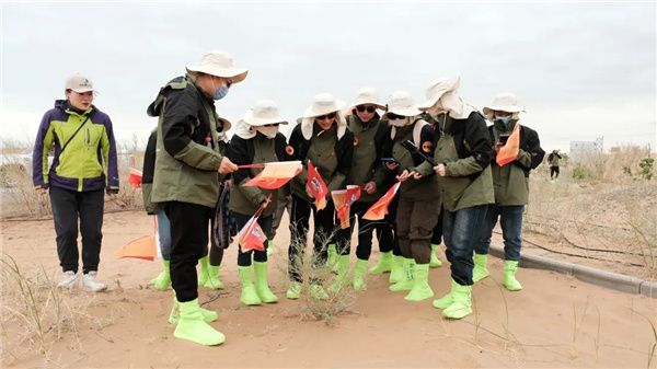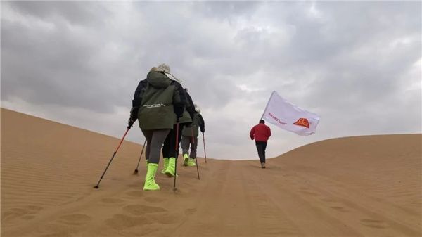 亲自到过这片荒漠,才明白“梭进沙退”是一件多么艰难而神圣的事情。这只队伍一同行走于一望无际的沙漠之中,感知了风沙的肆虐、体力的极限;更感悟到了原生态沙漠的雄浑之美;欣喜于沙漠中生命力量的珍贵与伟大;深刻了解了“领绿能,种梭梭,保护青山绿水”的意义所在。