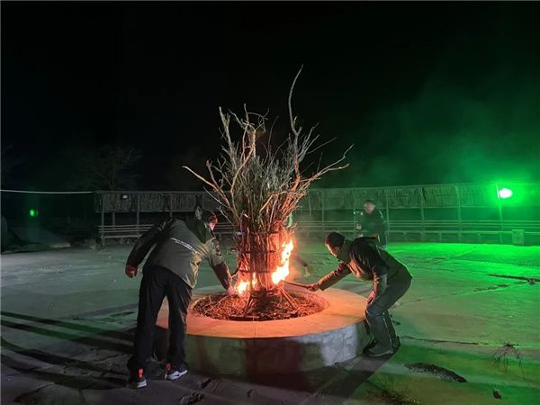 在激情的篝火晚会中,音乐、美食、歌声和热舞,为沙漠夜色增添了无限欢声笑语!在星光璀璨时,围着火堆夜谈,也必定让师傅们此次的公益之行记忆深刻。