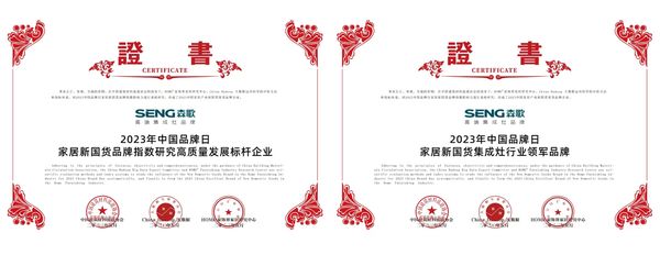 在这份颇具权威报告基础上评选出的众多奖项中,华为作为智能家居行业代表、卡萨帝则作为家电行业代表赫然在榜,森歌则作为集成灶行业唯一代表,入选“2023家居新国货影响力品牌”榜单,荣获“2023年家居新国货品牌指数研究高质量发展标杆企业”和“2023年家居新国货集成灶行业领军品牌”两项证书,凭借卓越的产品力荣获了“2023年家居国货之光”奖杯。这是森歌践行高质量发展再一次的有力证明!