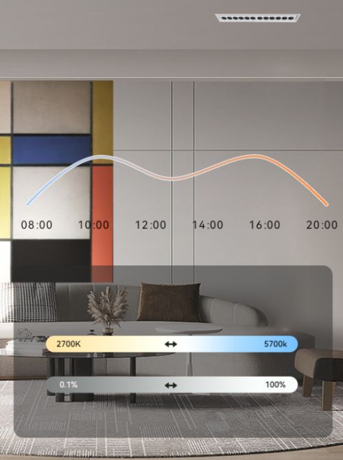 蒙德里安系列模组格栅灯灯头可进行角度调节,垂直可调30°,光线更为灵活自由;20°/40°可选光束角也使得空间内的多样照明需求能够被轻易满足;搭载邦奇独家研发DLINE直流数字调光系统,也可实现人体节律感知的0.1%~100%无极调光调色,以纵享丝滑的光效过渡轻松掌控成年人的情绪密码,让光成为单调生活的调味剂。