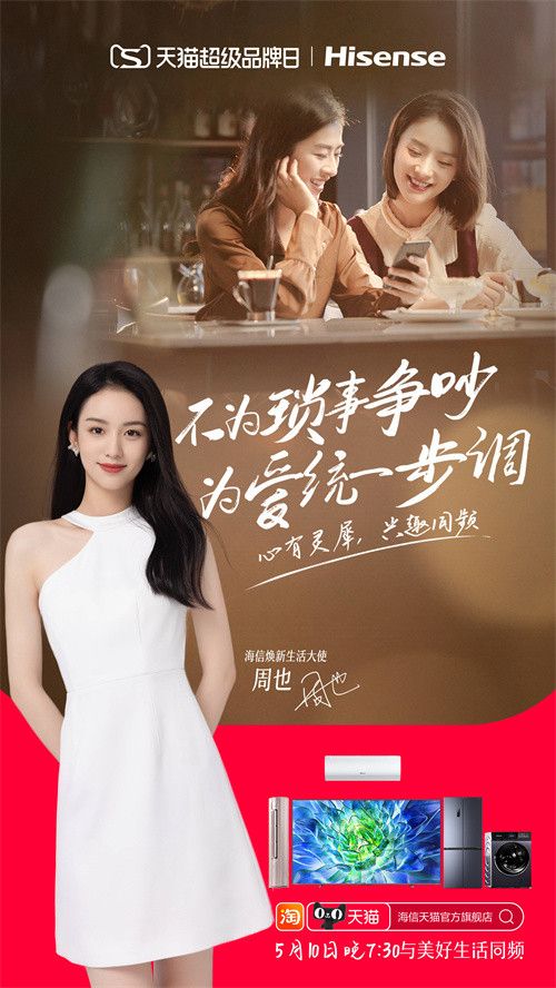 为了同新世代消费人群深入沟通,这次海信为天猫超级品牌日史诗级匹配了三个明星作为同频观察员。海信品质生活大使张小斐,以及海信焕新生活大使周也、知名篮球解说杨毅同时加盟,传达与美好生活同频的主张。通过诠释演绎亲情、爱情、友情中遇到的不同频问题,引发人们的思考与共鸣。放大海信的产品角色,在家电的助力下实现同频的美好生活。这些不同亲密关系的情感演绎,将活动理念和海信产品特点传递给更多人,号召大众一起来探寻与美好生活同频的秘密。