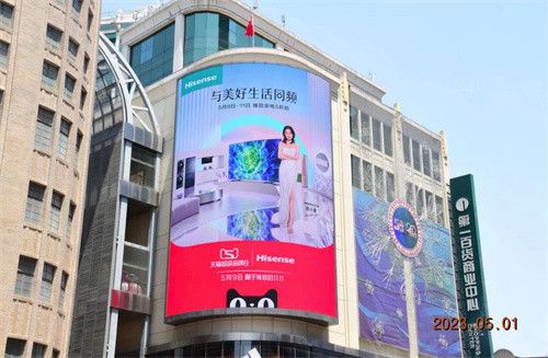 上海第一百货、成都太古里、重庆解放碑、杭州武林银泰、南京新街口等热门地标大屏均被海信品质生活大使张小斐和海信天猫超级品牌日的明星产品们占据了视觉中心。海信用最简单直接的方式,预告了5月9日上线的海信天猫超级品牌日。进一步拉近与用户的距离,除线上话题及互动外,增加了与用户沟通的触点,达成与更多受众的深度链接。