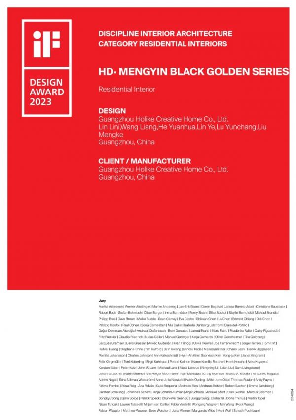近日,世界三大设计奖之一的德国iF设计奖获奖名单正式公布。HD·孟隐黑金系列在全球数万件参赛作品中脱颖而出,荣获德国 IF设计大奖(住宅空间类),获得国际顶尖设计评审团队及权威机构的认可,让世界看到当代东方原创设计力量。