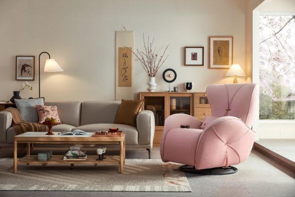 除了为国人描绘美好生活,林氏家居也在传统文化中汲取美好生活的力量,将传统美学融入产品中。例如在设计上,林氏家居将中国传统色融入到产品研发CMF体系,形成林氏家居专属色彩矩阵。在“怎么坐都可椅”中,就将“暮山紫”“桥下春波”“雨过天青”等传统色赋能到六大生活空间的设计中,形成了独有的中国色谱,打破了千篇一律的北欧、日系风格惯例。