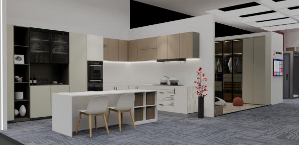 江山欧派本次参展将展馆直接搭建在公司兰考企业文化展厅中,同时利用原有企业文化展厅的环形动线串联起品牌区、企业文化区、木文化区、产品区四大板块展示空间。参展者可在轻松舒适的氛围中深入了解产品,领略欧派门窗·健康整装的产品定位与设计理念。