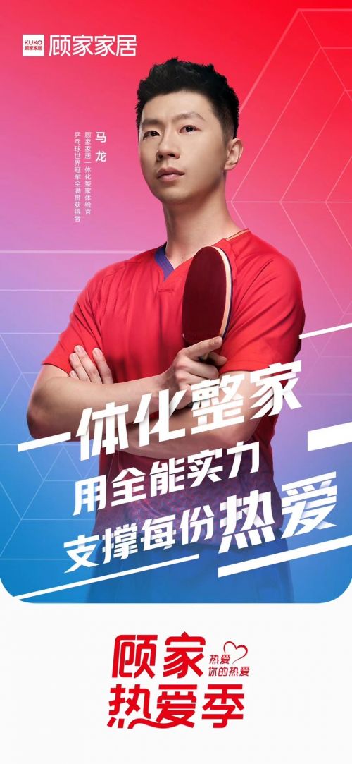 2023年5月10日,“一起赢未来——顾家家居2023年全国经销商大会”上,顾家家居官宣邀请世界乒乓球冠军、乒坛六边形战士马龙担任一体化整家体验官。由此,顾家家居全屋定制向“一体化整家”的战略升级之路正式开启,将携手经销商共同聚焦用户价值,多赛道发力,全渠道布局,朝着“有增值服务能力的零售运营商”的战略目标加速挺进,共赢家居零售新未来。