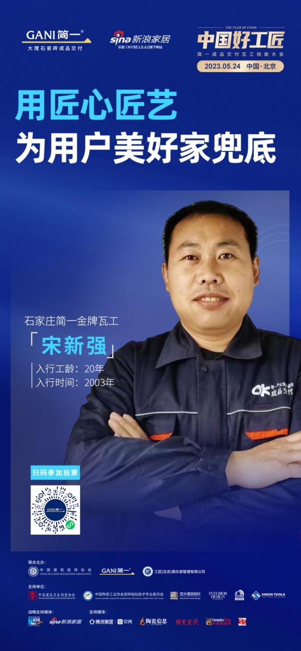 据悉,自2022年9月启动以来,大会吸引了全国5000多名金牌瓦工报名参与。历经近半年,通过对参赛者所申报的材料进行初审、评审、复核层层选拔后,最终选拨出11位金牌瓦工角逐全国总冠军。在比赛开始前,新浪家居有幸对话到了入围的11名瓦工师傅,以下是来自河北石家庄的宋新强师傅与小浪的对话: