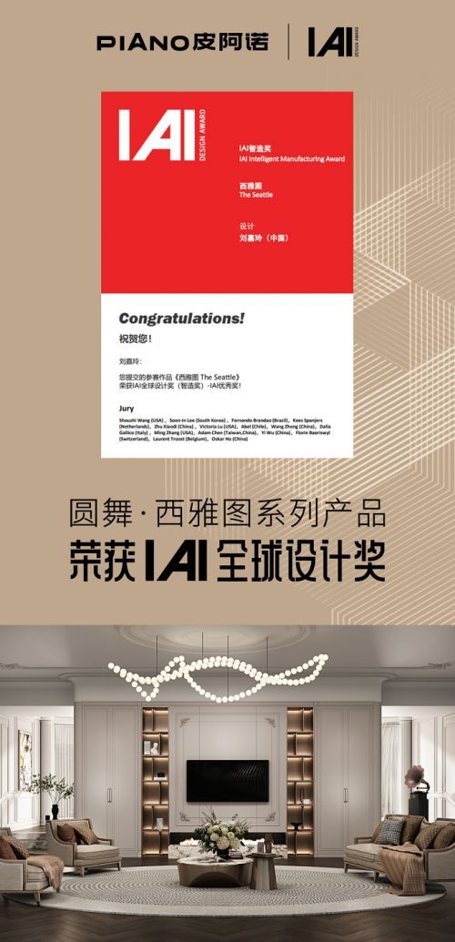 近日,有着“设计界的奥斯卡”之称的IAI设计奖2023年度评选获奖名单相继揭晓。皮阿诺圆舞·西雅图系列产品凭借创新设计和硬核品质,荣获IAI全球设计大奖(智造奖)设计优秀奖。