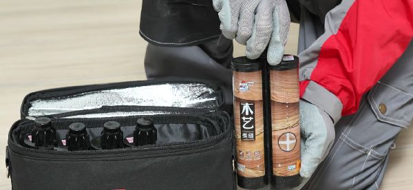 值得提醒的是,打蜡要均匀细致且不要打到砖缝里,以免美瓷胶无法粘结。