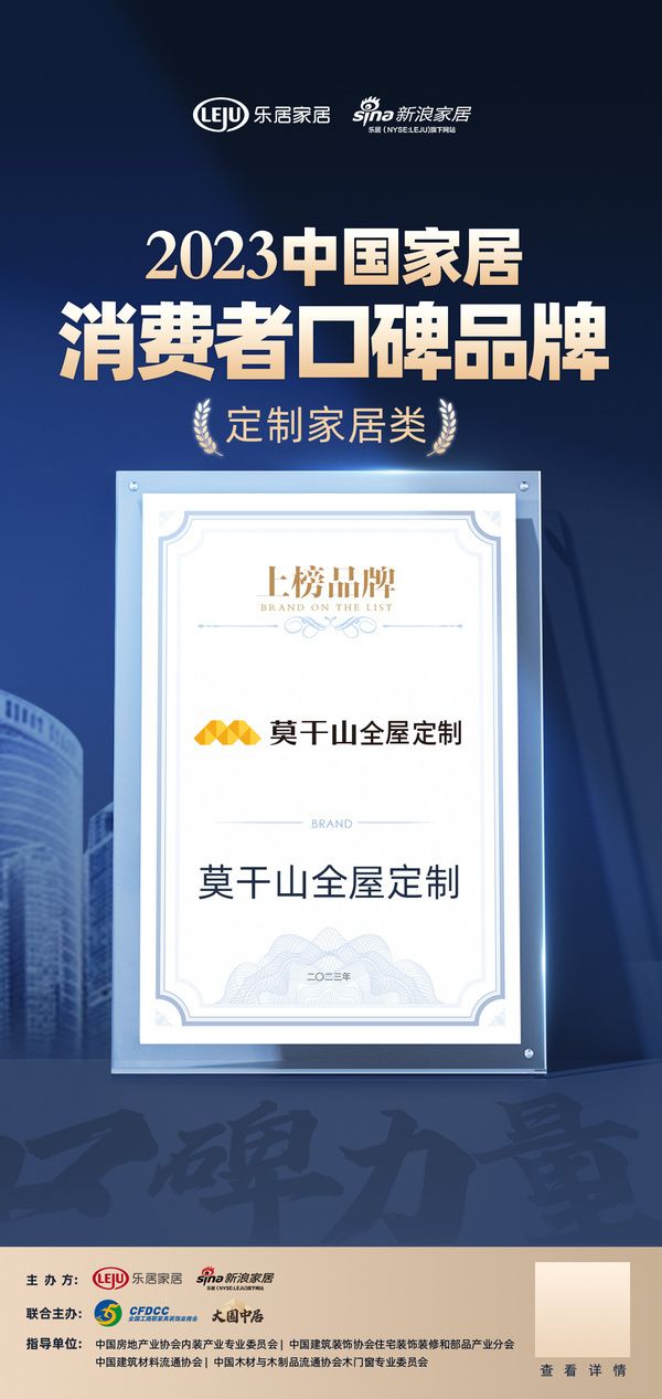 口碑传承 砥砺前行 | 莫干山全屋定制荣登“2023中国家居消费者口碑榜”