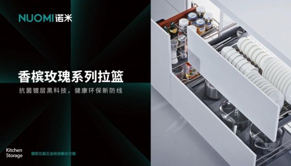基于场景洞察,诺米上新“香槟玫瑰”橱柜拉篮系列,首创抗菌纳米干镀技术,防腐蚀防锈能力一流,有效阻止细菌滋生及餐具二次污染。而且,以十级耐腐蚀镀层历经168小时中性盐雾测试,无惧潮湿环境,完善开启厨房健康守护的“最后一公里”。