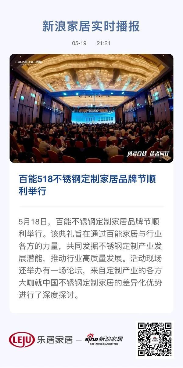 5月18日,百能不锈钢定制家居品牌节顺利举行。该典礼旨在通过百能家居的与行业各方力量共同发掘不锈钢定制产业发展潜能,推动行业高质量发展。活动现场还举办有一场论坛,来自定制产业的各方大咖就中国不锈钢定制家居的差异化优势进行了深度探讨。