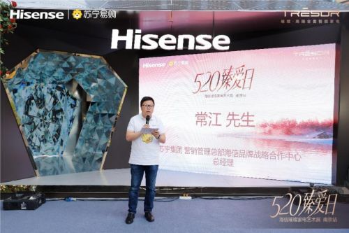 苏宁集团营销管理总部海信品牌战略合作中心总经理常江先生“率先登台致辞,细数双方携手走过的岁月,并向本次艺术展到场来宾送上最真挚的祝福与祝愿。言辞恳切,感情真挚,引来现场掌声连连。