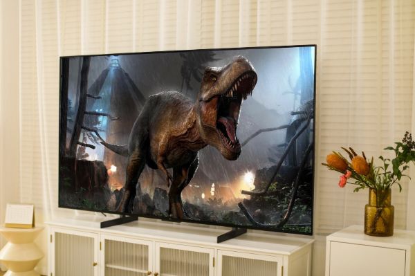 从实际显示效果来看,Q10H确实没让我失望,高达2304个背光分区与3000nits的峰值亮度表现让整个电视的画质呈现得相当高级,像是下面这个恐龙的视频,我们不仅能够清晰地看到恐龙身上的皮肤细节,远处的灯光亮度还原也是相当到位,整体真实感是很强的。