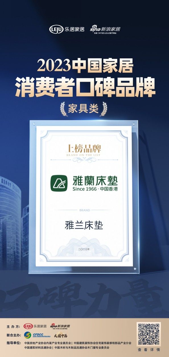 “洞悉口碑消费之下的价值驱动,用消费口碑见证品牌力量”,自4月15日问卷调查启动以来,在为期近25天的《2023中国家居消费者口碑调查》活动中,雅兰荣登“2023中国家居消费者口碑榜”。