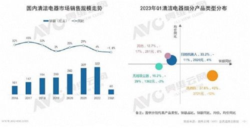 “懒人经济”的快速发展,衍生出了许多新兴行业,其中,能够深度清洁且省时省力的洗地机备受青睐,仅用3年时间,洗地机市场规模就突破了百亿元,展现出惊人的增幅。据奥维云网数据,2023年1季度,洗地机以37.8%占比成为清洁电器第一大细分类目。